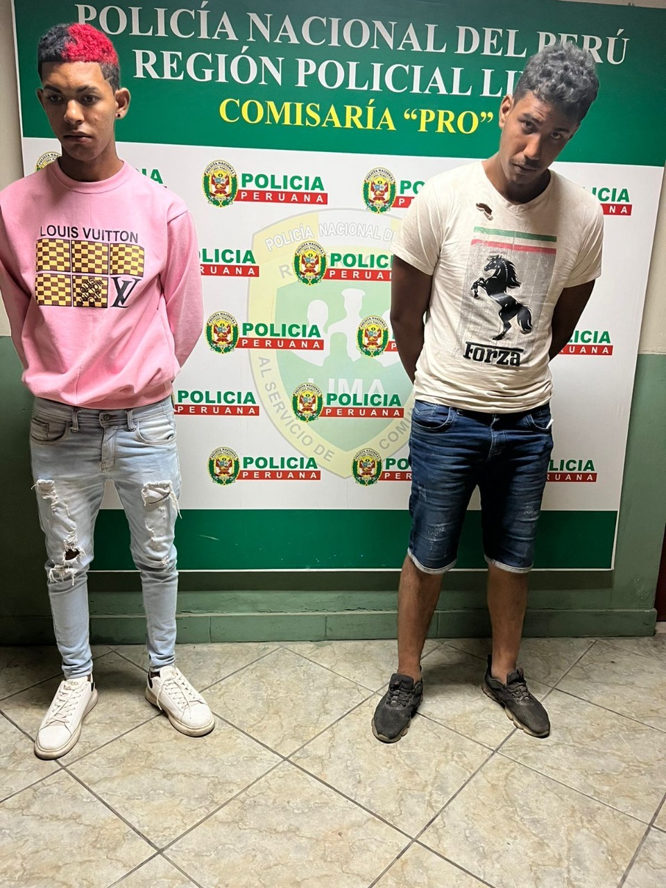Los venezolanos Yonder Javier Angulo Silva (18) y Axel Alberto Caldera Orozco (21), que serían parte de la banda ‘los chamos de Pro’, asaltaron a golpes a un joven estudiante, y le robaron sus pertenencias, en Los Olivos.
