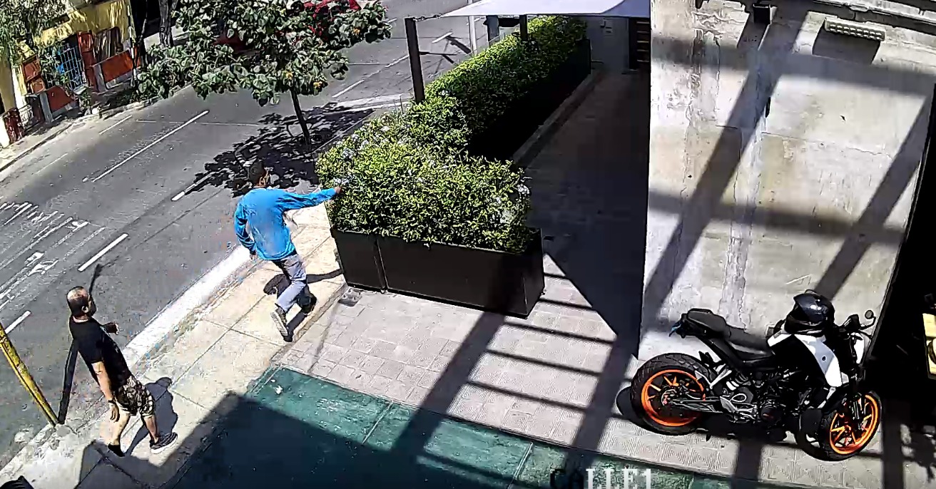 Los maleantes, al percatarse de la presencia de un patrullero, abandonaron las armas en jardines en prevención en el caso que los intervinieran. Esto fue captado por una cámara de seguridad.
