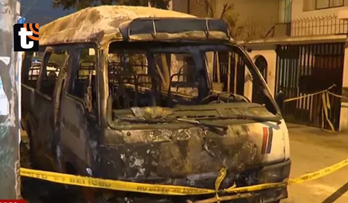 Una combi fue incendiada a plena luz del día en la calle Las Begonias, en el distrito de San Martín de Porres. Según el propietario, un hombre con casco se acercó al vehículo, roció combustible desde una pequeña galonera y luego prendió fuego, dejando el recipiente sobre el asiento del piloto antes de escapar.