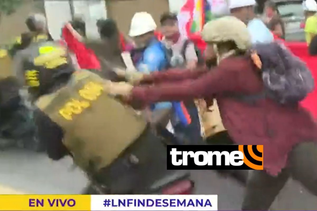 En un primer momento, el incidente no pasó a mayores y no se produjeron agresiones de ningún tipo, según reportó el noticiero Latina. Los líderes de la protesta indicaron que buscarían otra ruta para continuar con la movilización hacia el Cercado de Lima.