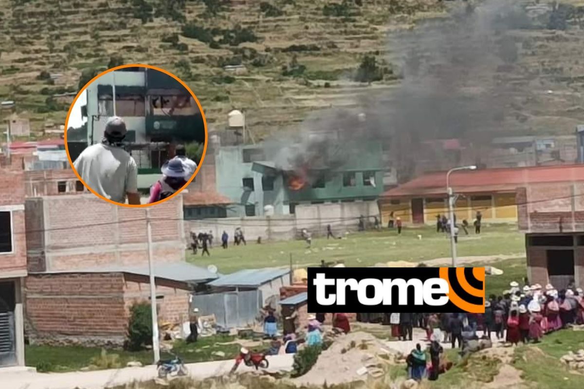 Los choques entre manifestantes y agentes de la Policía Nacional derivaron en ataques con piedras a la comisaría de Juli, incluso prendieron fuego a dichas instalaciones, según imágenes difundidas por medios locales y redes sociales.