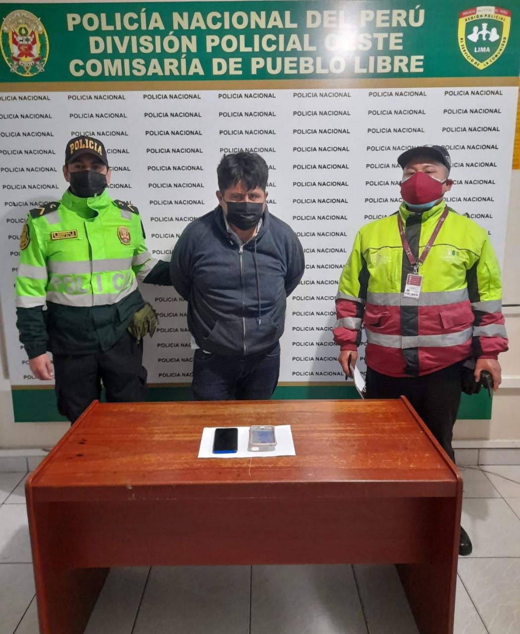 Cometió su último robo. Un delincuente dedicado al arrebato de celulares fue capturado por serenos del distrito de Pueblo Libre luego de golpear y robarle su teléfono a una joven que bajaba de un ómnibus de transporte público. Actuaba en complicidad de otro sujeto que logró huir.