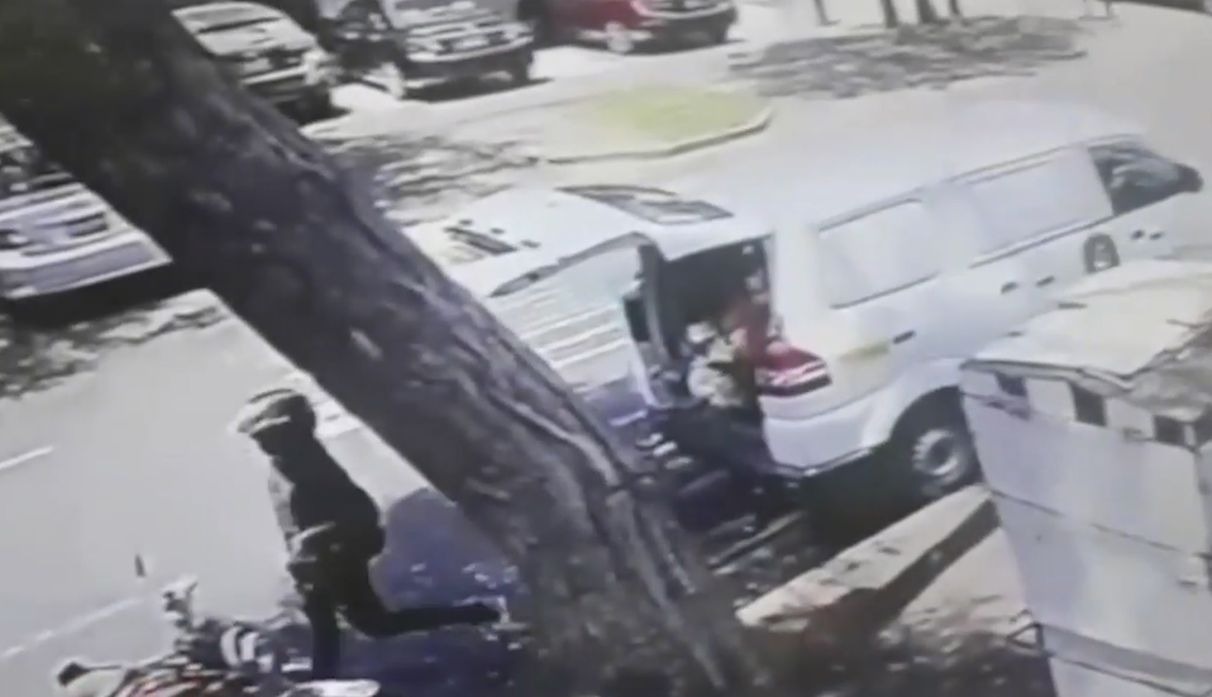 Inmediatamente un hombre sale corriendo asustado y tras él los dos delincuentes, que abordaron la moto y se fueron de la zona con el botín.