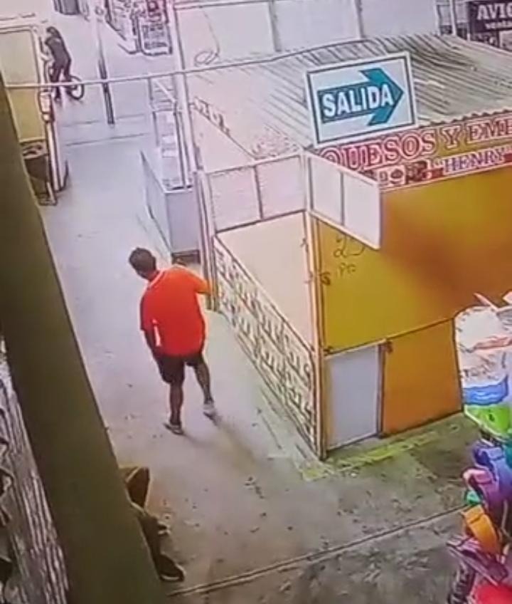 Un delincuente fingió ser un discapacitado, con una evidente cojera, y robó en pocos segundos una cajita con dinero de un puesto en el mercado El Amauta 1 en Campoy, San Juan de Lurigancho.