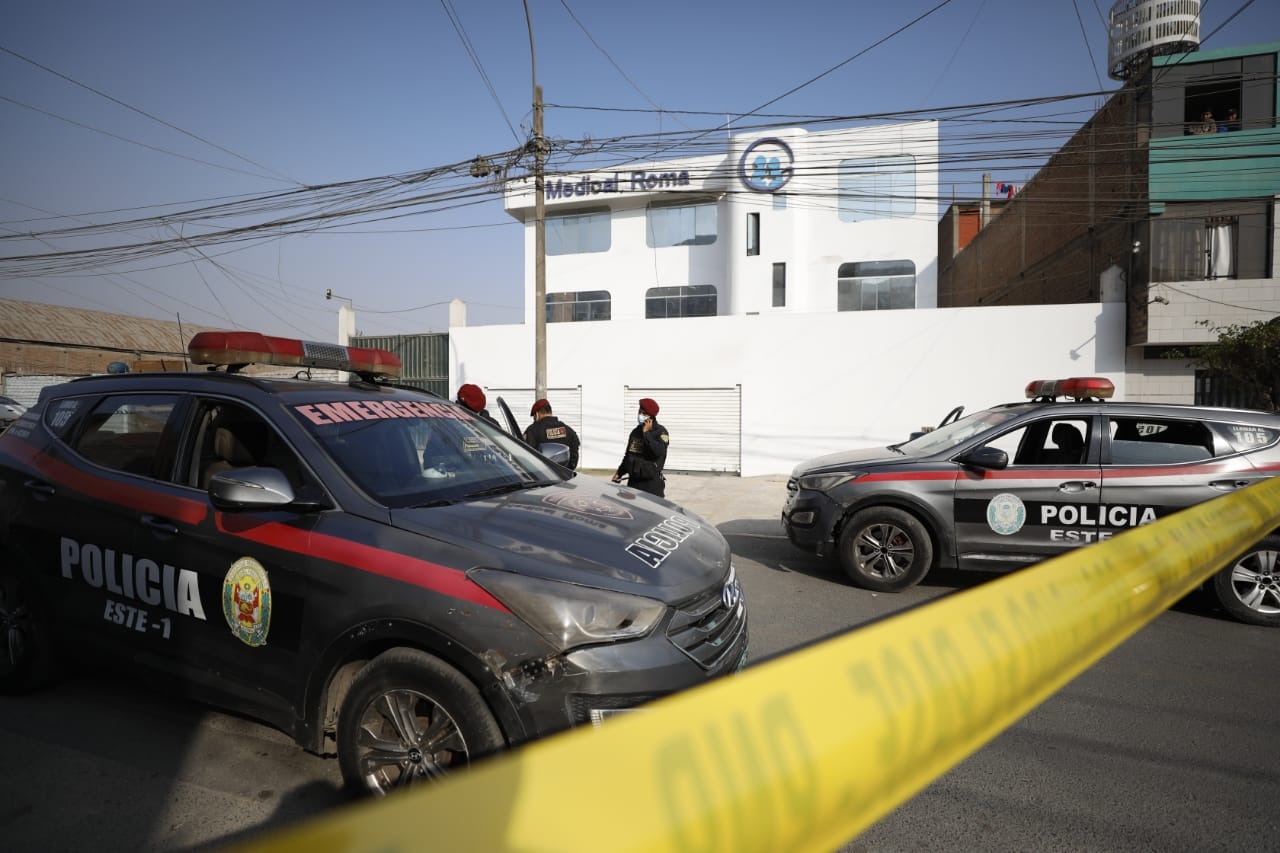 A unos metros de una sede policial, tres feroces delincuentes armados irrumpieron en la clínica ‘Medical Roma’ y asaltaron a clientes y trabajadores. Pero el dueño del recinto trató de evitar el violento atraco y fue asesinado a balazos. Un miembro de seguridad resultó herido en el ataque, en San Juan de Lurigancho.