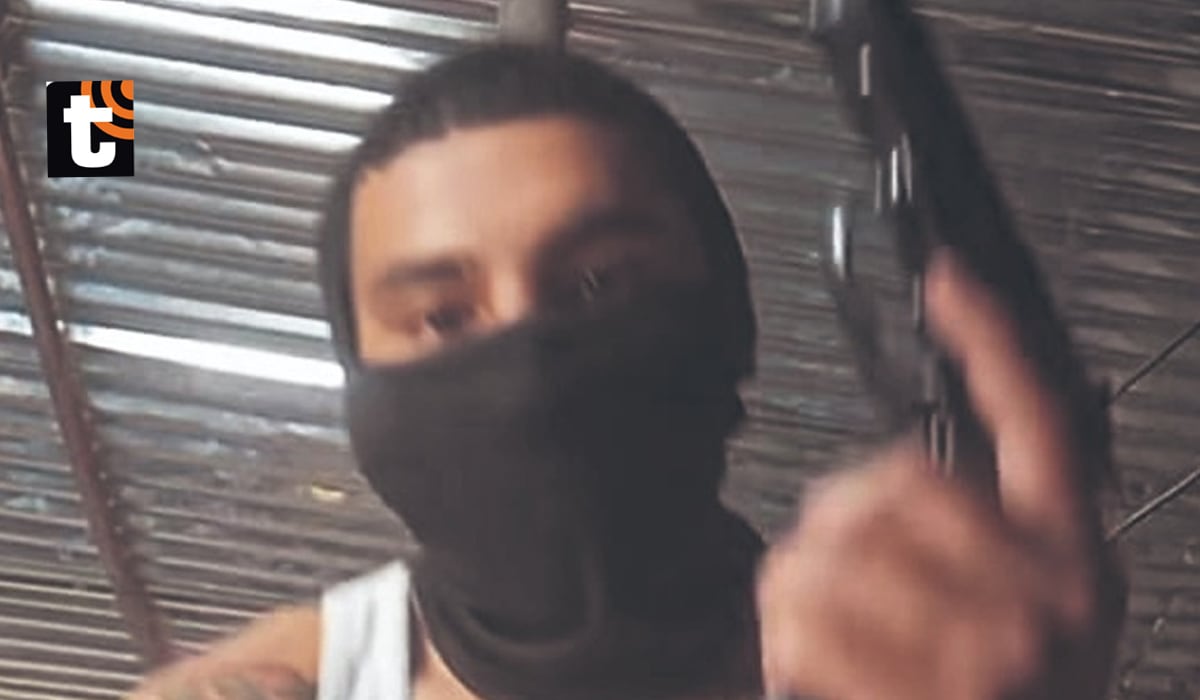 En un video se le ve semidesnudo con el armamento sobre su pecho y con la mano muestra una munición y una cacerina. De fondo, una música del género trap. En otro, empuña el arma y pone el dedo en el gatillo mientras habla.