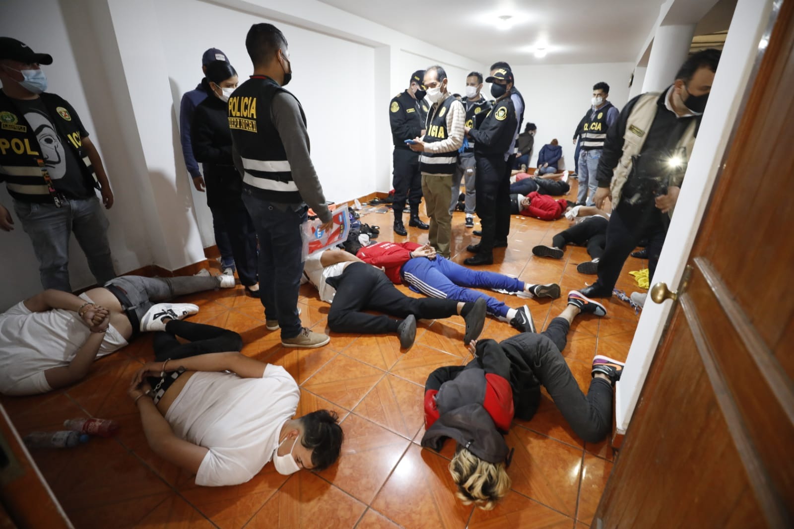 “Los policías de Depincri San Juan de Miraflores realizaron un trabajo de inteligencia y los atraparon en su guarida. Dijeron que como es viernes estaban tomando licor. Ellos salen a cometer los asaltos y luego se esconden en esta casa, que era usada como su centro de operaciones. Celebran los atracos con licor y droga, además se tomaban fotos con armas y hacían videos de los atracos que cometían”, dijo el general PNP Jorge Angulo.
