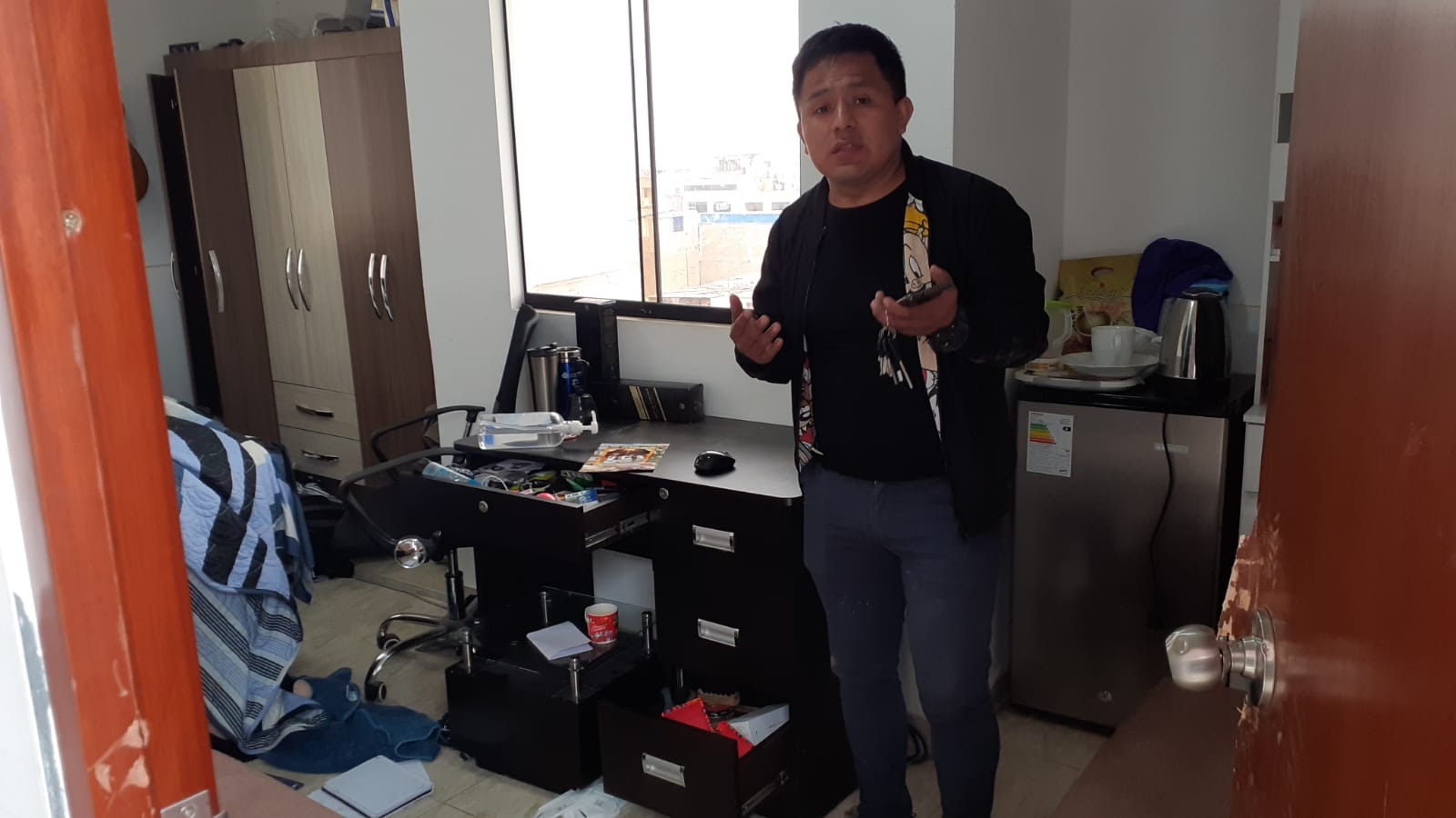 “Éramos amigos. Incluso la noche del sábado me ayudó a sacar mi moto lineal de la casa. Creo que consumió drogas porque horas después derrumbó de una patada la puerta del cuarto alquilado donde vivo. Ingresó y destrozó todo lo que encontró a su paso. Agarró mi laptop y monitor de la computadora y lo arrojó a la casa vecina. Luego rebuscó todos los cajones y robó 7 mil soles que ahorré para mi negocio”, dijo.