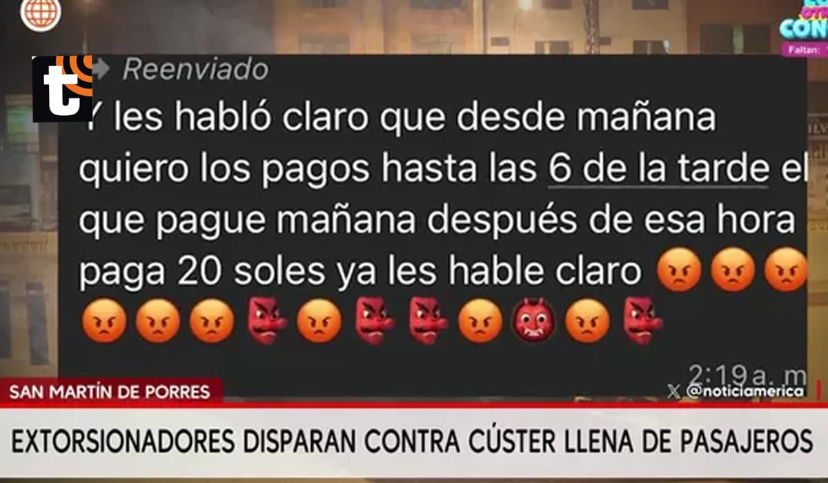 Se conoció que la empresa HRG Express es víctima de extorsión por parte de dos bandas criminales que operan en la zona. Estas organizaciones exigen a los conductores el pago diario de cupos que van desde los 15 hasta los 20 soles por cada unidad, modalidad que ya habría provocado al menos cinco atentados similares en lo que va del año.
