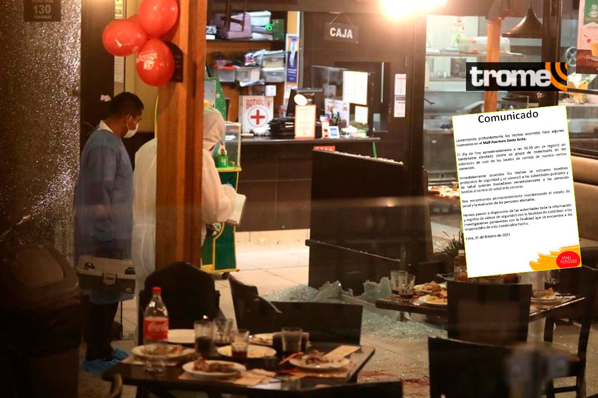 “El día de hoy (martes 14 de febrero) aproximadamente a las 10.30 pm se registró un condenable atentado contra un grupo de comensales en los exteriores de uno de los locales de comida de nuestro centro comercial”, se lee.