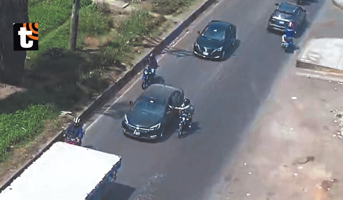 En un momento, el conductor de uno de los autos le entregó un paquete al de la moto.
