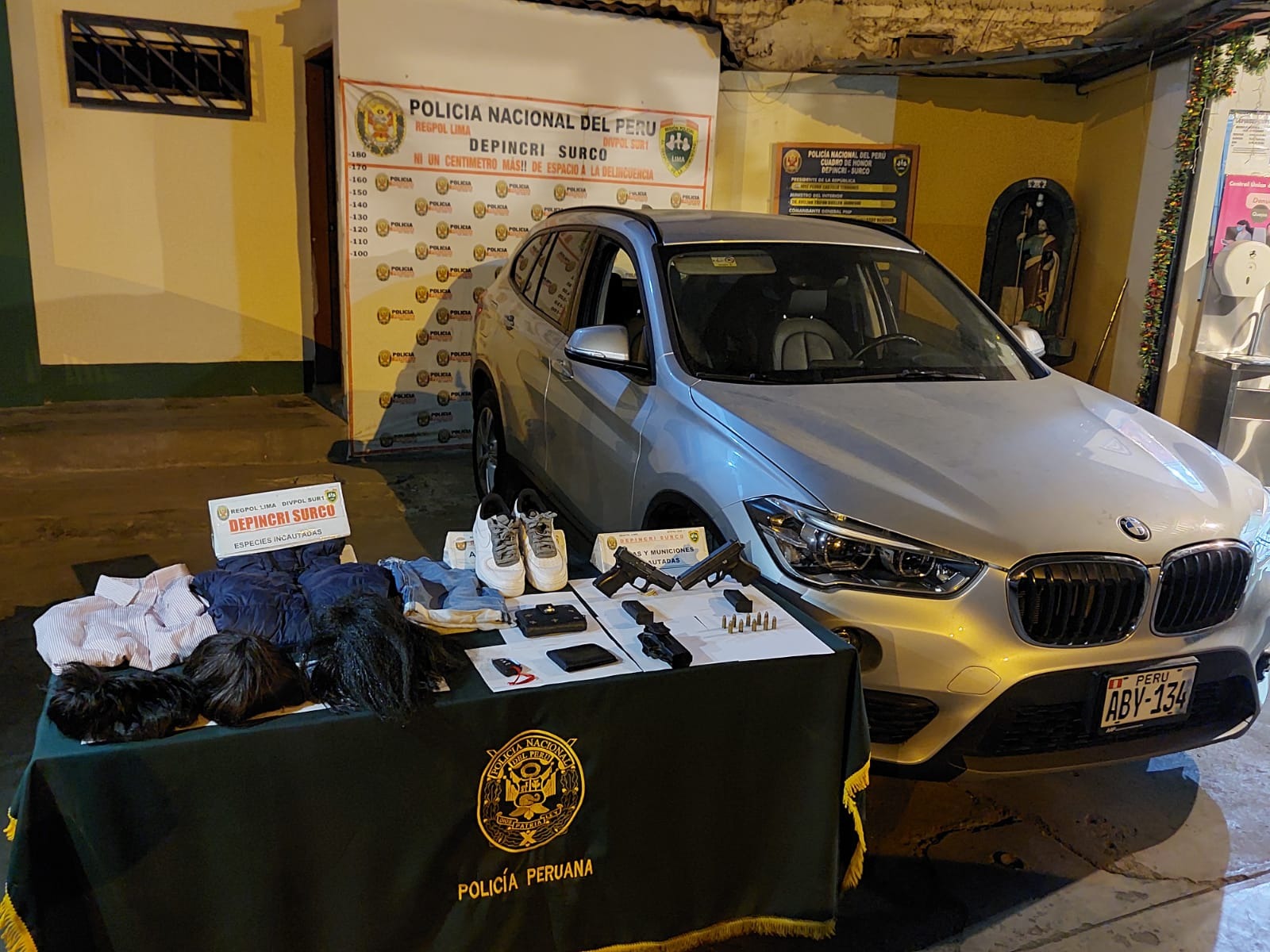 Los hampones que en la tenaz persecución por Surco y Surquillo, arrojaron armas y pelucas, robaron la camioneta BMW el 28 de diciembre para cometer asaltos en diferentes distritos. El último atraco a mano armada lo cometieron a un empresario a quien encañonaron en su auto y le robaron celulares, dinero y otros objetos de valor.