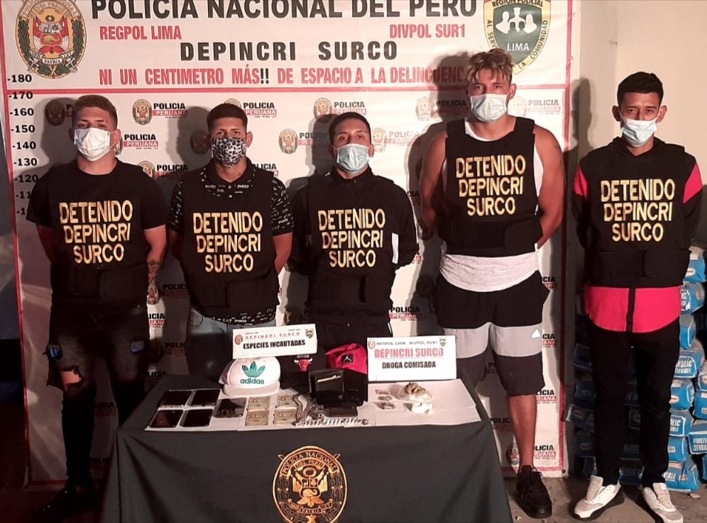 Los sujetos se desplazaban en forma sospechosa, a bordo del auto robo de placa H2J-602, por el sector de Parque Alto, cuando los policías los atraparon. Se identificó a Benjamín Ernesto Rendón Pacheco (18), Jeff Patric Carlin López (31), Emir Armando Eslava Colangello (19), Ryan Santin Reyes (19) y Jefferson Durand Pinedo (19), quienes serian de la banda ‘Los Temibles de Parque Alto’ .