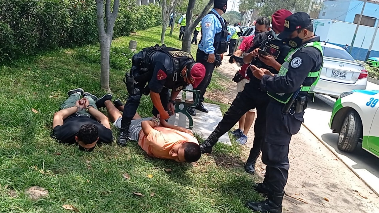 Los presuntos delincuentes se dieron a la fuga, pero fueron perseguidos hasta el cruce de los jirones Morro Solar y Loma de las Lilas. El vehículo fue cercado y los ocupantes terminaron boca abajo sobre el pasto. Fueron identificados como L. C. M. y M. D. B., así como el extranjero A. D. C.