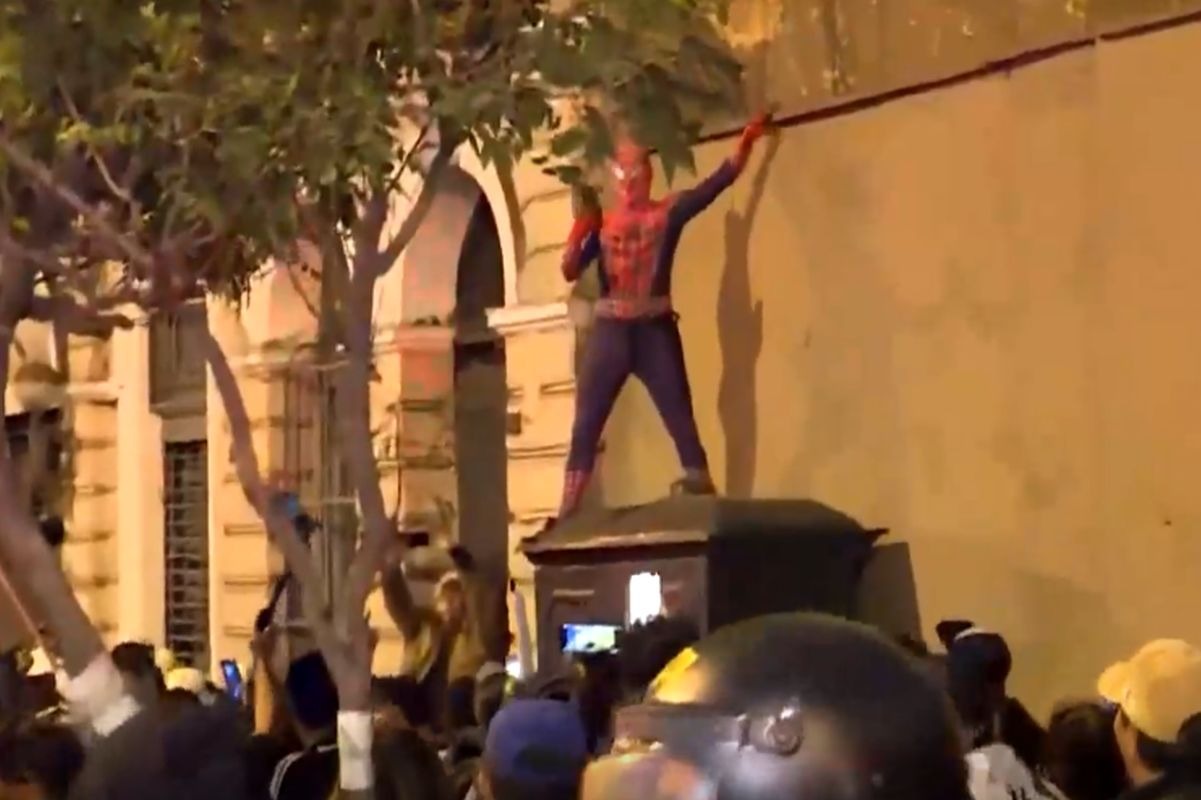 Se trataba de un joven disfrazado como el popular superhéroe de Marvel ‘Spiderman’, quien no dudó en saludar a las cámaras de Canal N desde lo alto de un muro de la avenida Abancay. Mientras esto tenía lugar, las fuerzas del orden trataban de sacar a los protestantes hacia el Parque Universitario.