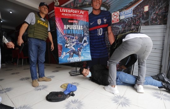“¡Al suelo, carajo, al piso!” gritaron los detectives que, con una ráfaga de disparos al aire atraparon a dos rateros extranjeros que asaltaron a mano armada una casa de apuestas deportivas y se llevaban el dinero, en San Martín de Porres.