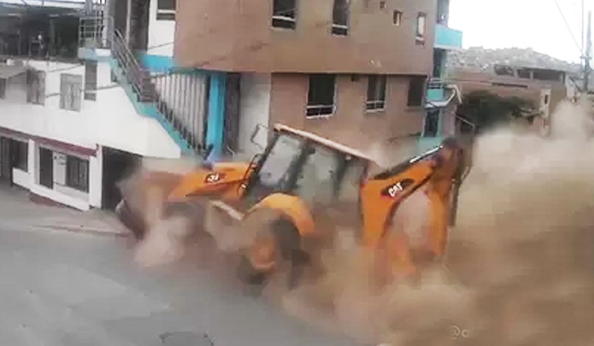 De acuerdo con la información preliminar brindada por la Policía Nacional, la unidad pesada avanzó a gran velocidad y arrasó con todo a su paso. Durante su recorrido, la retroexcavadora destruyó una mototaxi, derribó parte del muro de una casa y ocasionó afectaciones visibles en veredas, portones y estructuras cercanas.