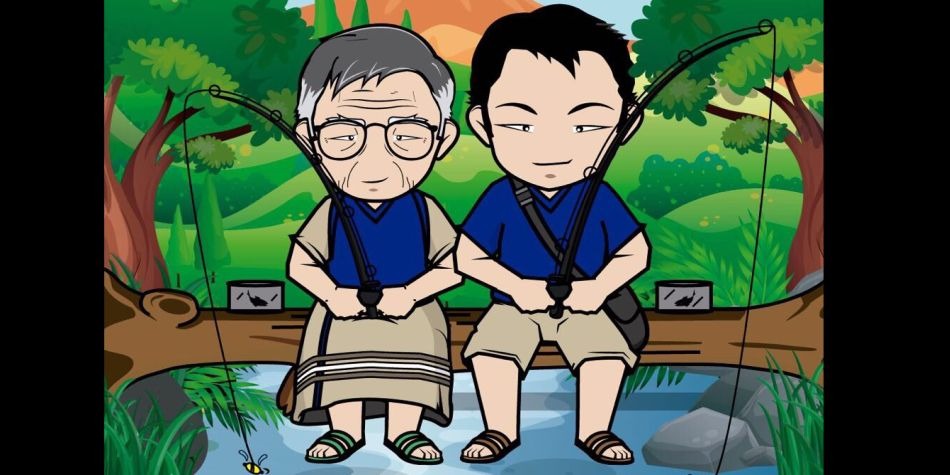 El tuit de Kenji Fujimori fue acompañada con una caricatura donde donde sale junto a Alberto Fujimori pescando y en un escenario de mucha paz.