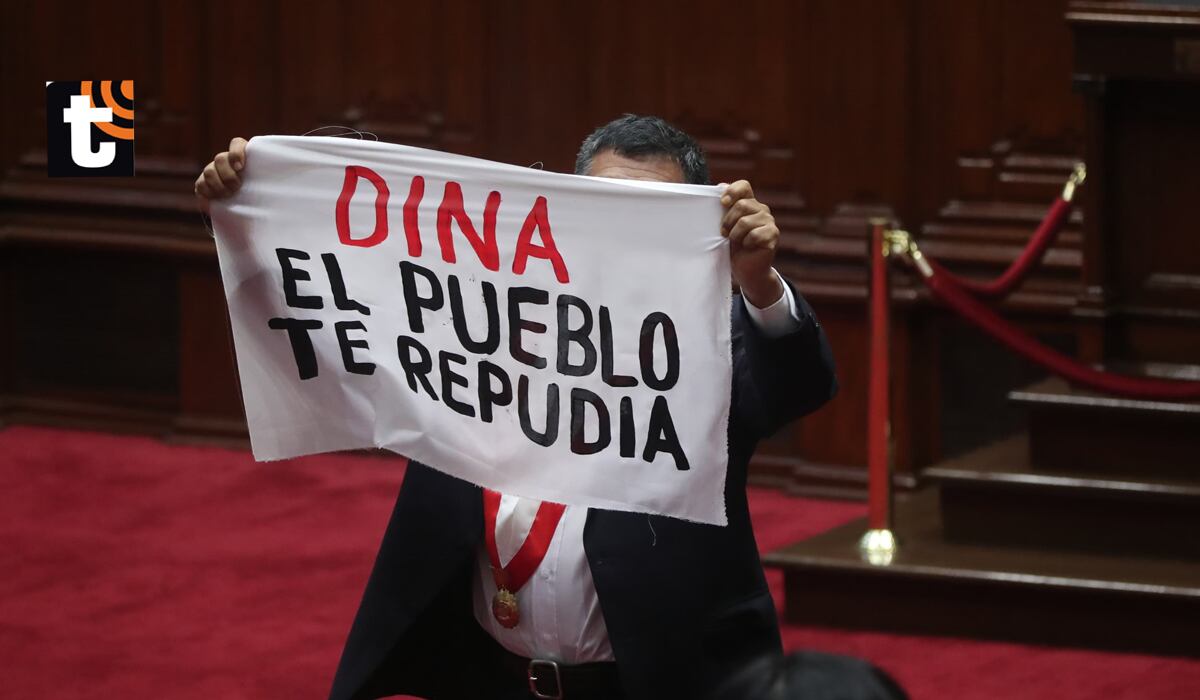 Además, otros parlamentarios de bancadas de izquierda se sumaron a la protesta. Con carteles, polos y fotografías, manifestaron su rechazo al régimen. Legisladores como Jaime Quito y Wilson Quispe se levantaron de sus curules y mostraron mensajes como: “El pueblo no se rinde”, “Dina el pueblo te repudia” y “Justicia para el pueblo”.