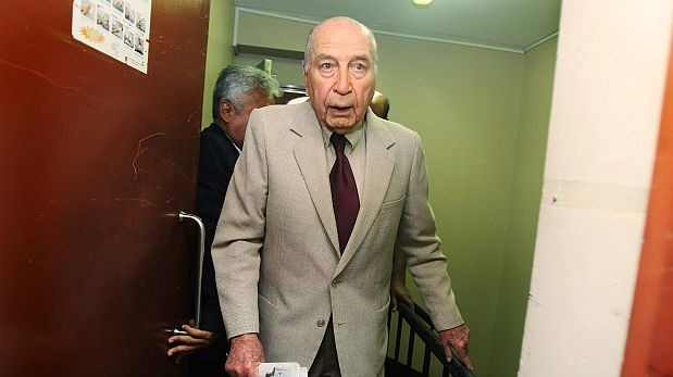 El expresidente del Perú Francisco Morales Bermúdez acudió a votar hoy a un colegio ubicado en San Isidro en el marco de la segunda vuelta electoral que se viene realizando a lo largo de la jornada del domingo 6 de junio.