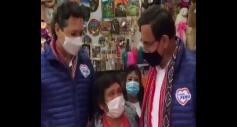 ROMPIÓ EN LLANTO. Una mujer no pudo contener la emoción al ver al expresidente Martín Vizcarra mientras realizaba una actividad proselitista por la ciudad del Cusco durante esta semana.
