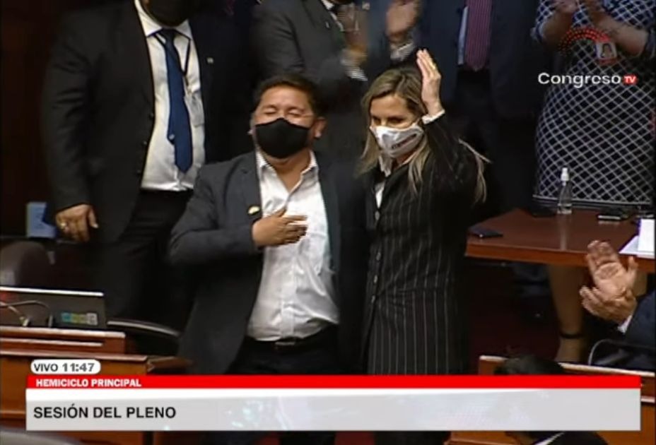 Tras superar esta moción, María del Carmen Alva recibió los aplausos de la mayoría del hemiciclo, empezando por su bancada y por la oposición integrada por Fuerza Popular y Renovación Popular.