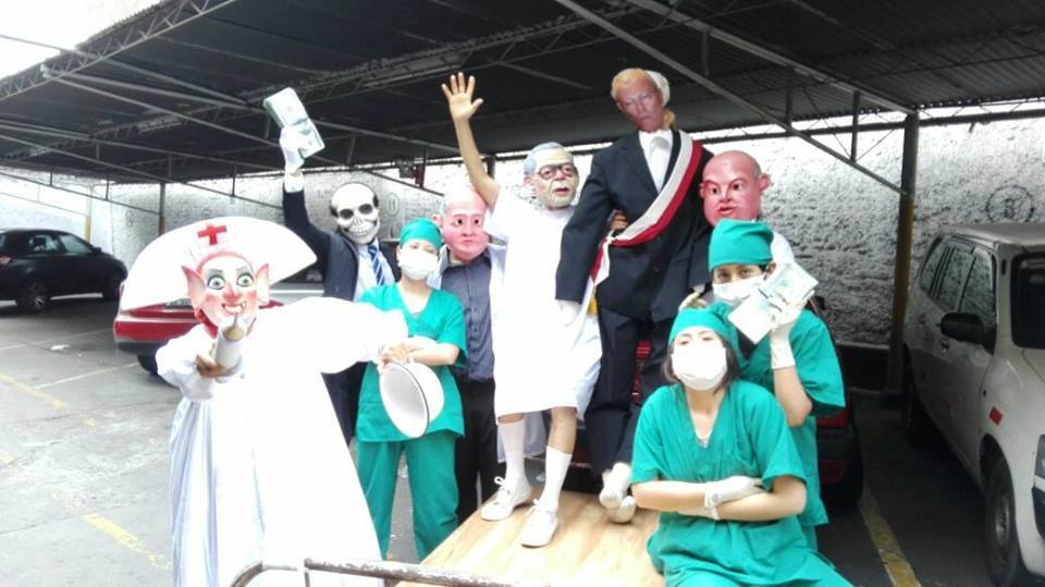 En la imagen viralizada por usuarios de redes sociales se observa a la agrupación caracterizada como Alberto Fujimori y su exasesor Vladimiro Montesinos. La fotografía emociona a muchos porque demuestra el compromiso político que tiene Yuyachkani.