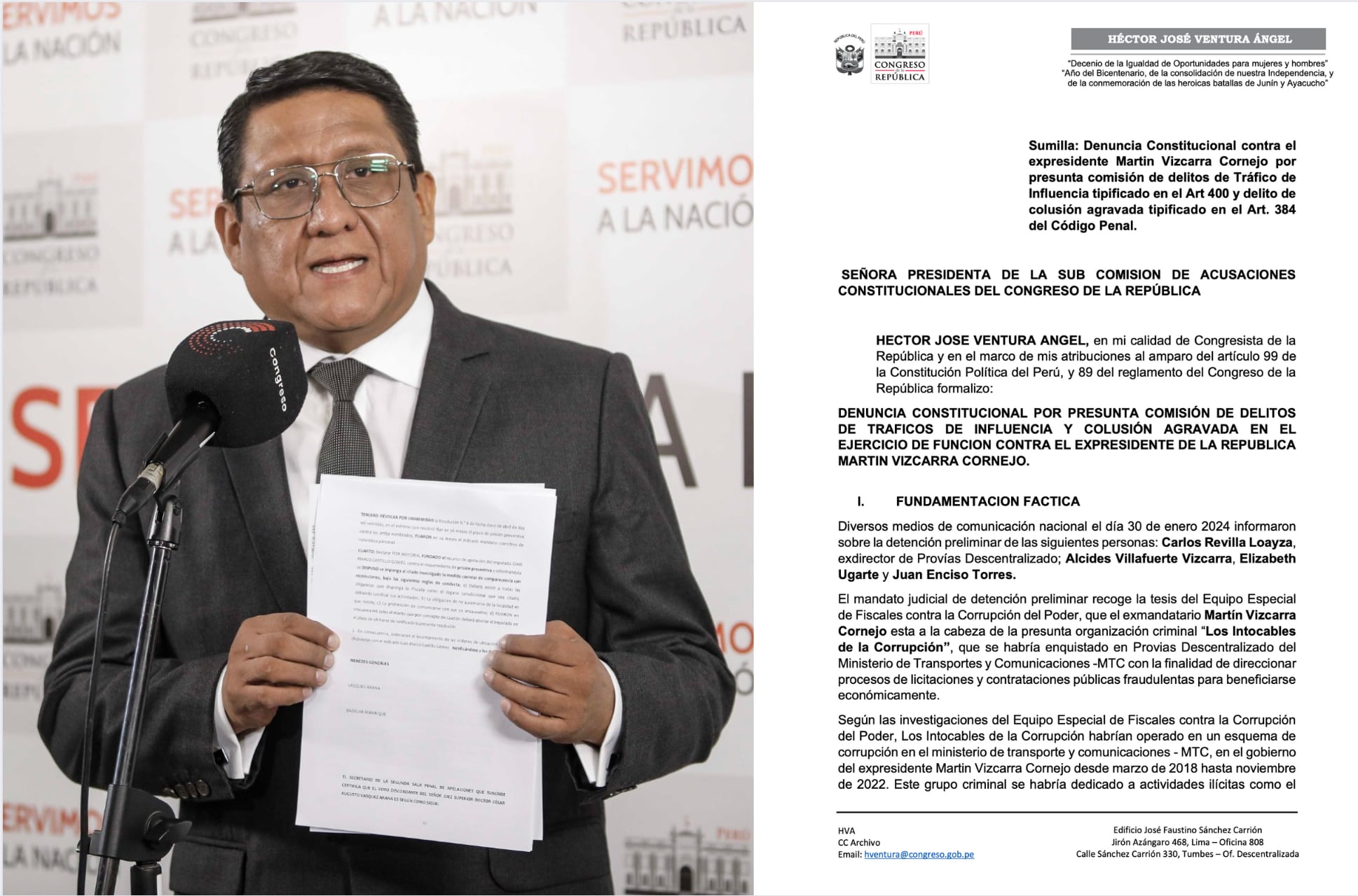 NO LO SUELTAN. Tras conocerse que el Poder Judicial ordenó el archivamiento de dos de los delitos imputados al ex presidente Martín Vizcarra, desde el Congreso, el parlamentario Héctor Ventura (Fuerza Popular) anunció que presentará una denuncia constitucional contra el ex mandatario por el caso ‘Los Intocables de la Corrupción’.