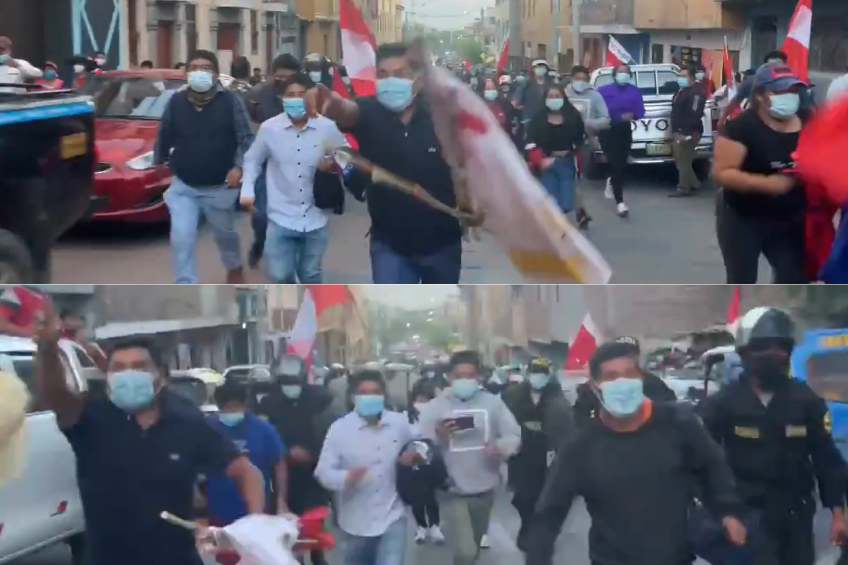 Luego, Medina filmó a los adeptos de Castillo Terrones corriendo tras la camioneta del equipo y, en tono amenazante y violento, gritándoles “prensa basura, prensa vendida, ustedes tienen la culpa”, poniendo en riesgo la integridad de los periodistas.