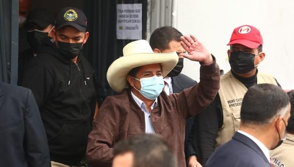 El candidato de Perú Libre estuvo acompañado por la candidata a la primera vicepresidencia de su partido, Dina Boluarte, así como del excongresista Hernando Cevallos, parte de su equipo técnico.