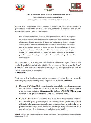 La decisión del juez Jorge Chávez permite que las mencionadas empresas sean consideradas como parte investigada, no solo para afrontar responsabilidades indemnizatorias directas, sino también para afrontar sanción penal.