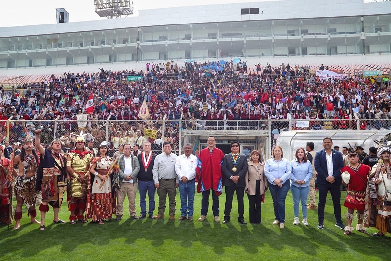En el recinto deportivo, el presidente destacó la transferencia de 200 millones de soles para la conclusión del hospital Antonio Lorena y la administración temporal del citado estadio al Gobierno Regional Cusco, con el objetivo de garantizar una gestión eficiente que promueva el deporte.