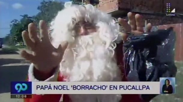 En Pucallpa, quien festejó la Navidad a más no poder fue Papá Noel. El hombre de rojo, se pasó de copas mientras entregaba regalos y terminó tirado en el suelo.