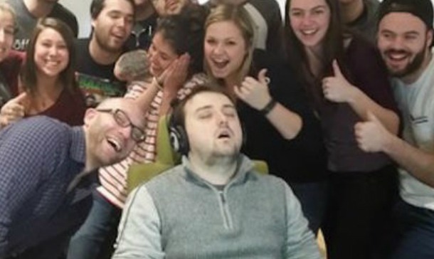 Resulta que en vez de despertarlo, no tuvieron mejor idea que tomarse una foto grupal con él.