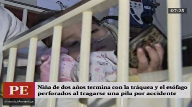 Una bebé de casi dos años de edad se tragó una pila que le perforó el esófago y la tráquea, pero fue sometida a una delicada operación y luego de estar 50 días en cuidados intensivos afortunadamente se recuperó.