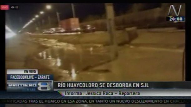 De acuerdo al reporte de Canal N, los vecinos informaron que el desborde del río Huaycoloro provoca un aniego por toda la carretera Ramiro Prialé, en San Juan de Lurigancho.