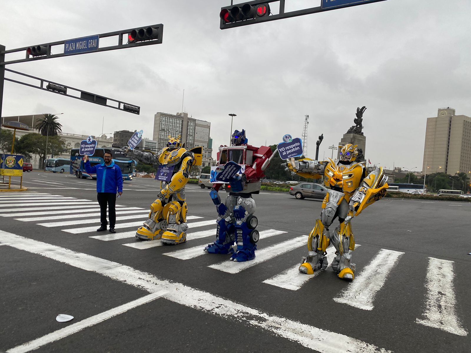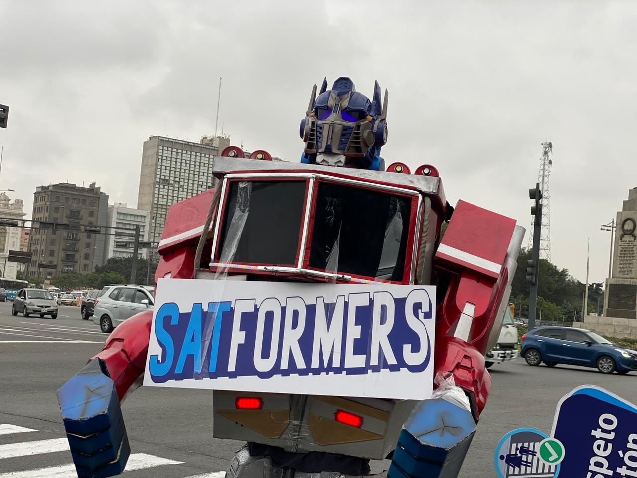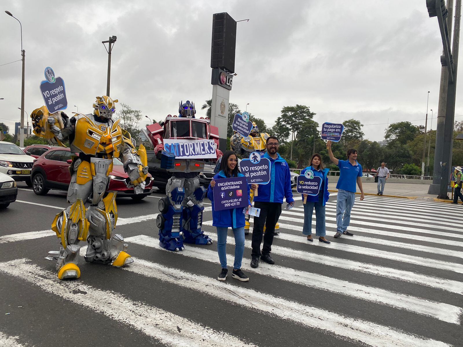 Junto a los Transformers Peruanos y su creador Glicerio Tolentino Retis, los SATFORMES, portando carteles, afiches y mensajes sensibilizadores, llegaron a Cercado de Lima para concientizar a los conductores para evitar accidentes de tránsito y dejar de ser primer país con el peor tráfico de Latinoamérica.