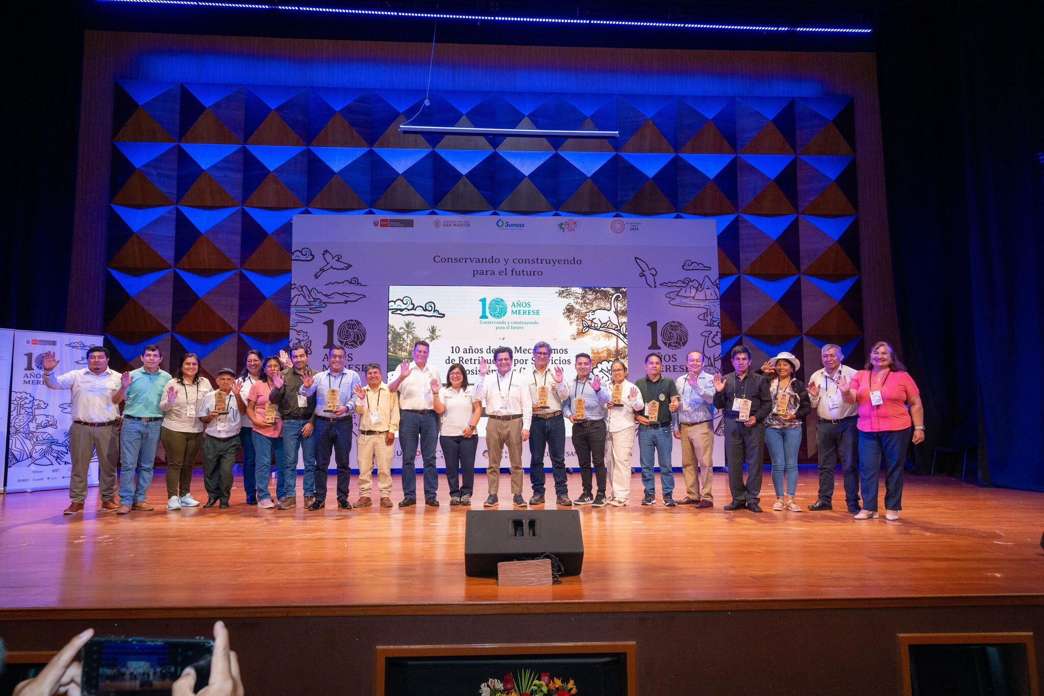 Durante una emotiva ceremonia denominada “10 años de la Ley MERESE”, que se realizó en el Centro Cultural de Moyobamba, Tarapoto, región de San Martín, ambas autoridades entregaron reconocimientos a 9 iniciativas MERESE y 2 plataformas de buena gobernanza registradas a nivel nacional, en mérito al esfuerzo conjunto de comunidades y organizaciones para fortalecer la gestión de los recursos naturales y promover el bienestar social.