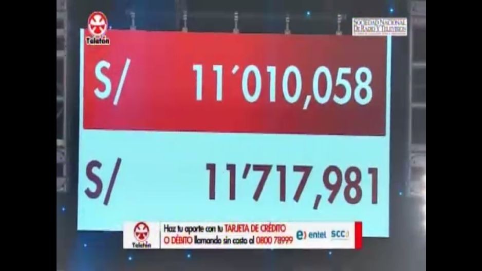 La cifra final fue de 11 millones 717 mil 981 soles, algo que los presentes en el set principal de la Teletón 2017 festejaron a morir. El cierre de la colecta se dio luego de presentar el caso de un militar que quedó discapacitado en un ataque terrorista.