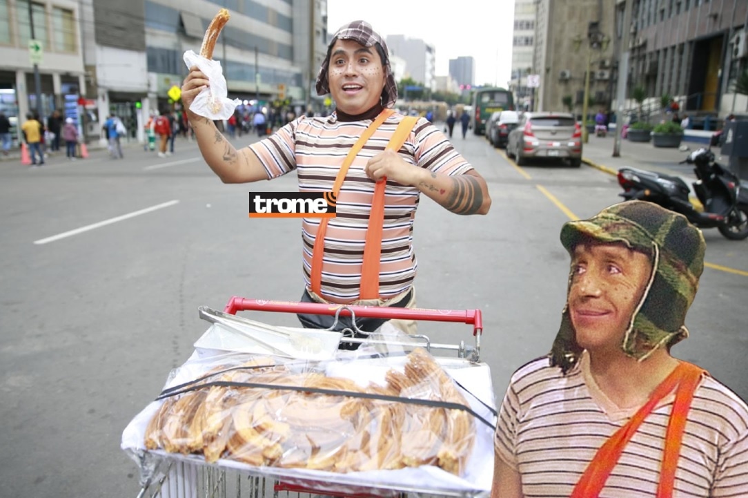 “Recién tengo tres semanas vendiendo churros. Trabajaba como ayudante de técnico de fibra óptica, también en mudanza, fui mesero y ‘jalador’ en tienda del Centro de Lima. Una señora me animó a vender churros. No es fácil, pero soy fanático del Chavo del 8 y mientras caminaba pensando cómo vender, salió la idea al ver un traje y me lo compré. Recién tengo una semana como Chavito del 8 peruano, con mis churros”, dijo a Trome.