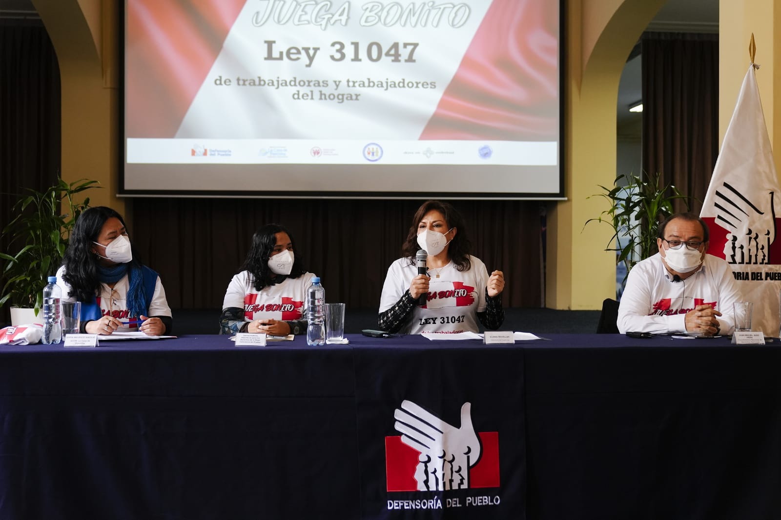 A su turno, la defensora del pueblo, Eliana Revollar Añaños, mencionó que todavía falta mucho para garantizar una real protección de las trabajadoras del hogar. “Nos sumamos al pedido de las organizaciones y a la campaña ‘Juega Bonito’ para que se cumplan los derechos de este sector, ya que históricamente han sido relegadas. Instamos al Estado y a las instituciones competentes a garantizar el respeto a la Ley n.° 31047, Ley de las trabajadoras y los trabajadores del hogar”, manifestó la autoridad.