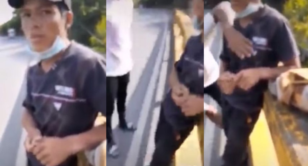En las imágenes, que duran tan solo 40 segundos, se ve al joven peruano apoyado sobre la baranda de un puente, en un lugar no determinado, mientras al menos dos venezolanos lo interrogan.