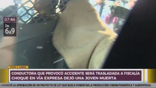 Luego de pasar la prueba de dosaje etílico y ser trasladada a la comisaria de Lince, Romina Calisaya Arizaga, la conductora que provocó la muerte de una de joven de 21 años en la Vía Expresa de Paseo de la República, fue llevada a la fiscalía esta mañana.
