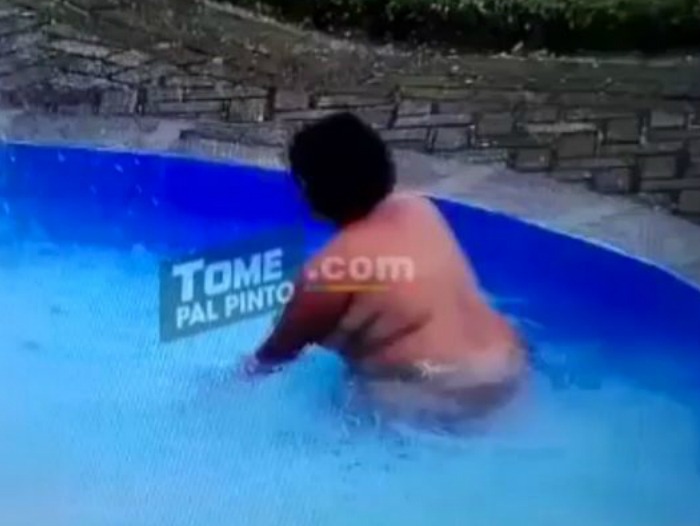 Un video en YouTube muestra el momento en que una mujer trata de nadar en topless en una fuente ubicada en un parque.