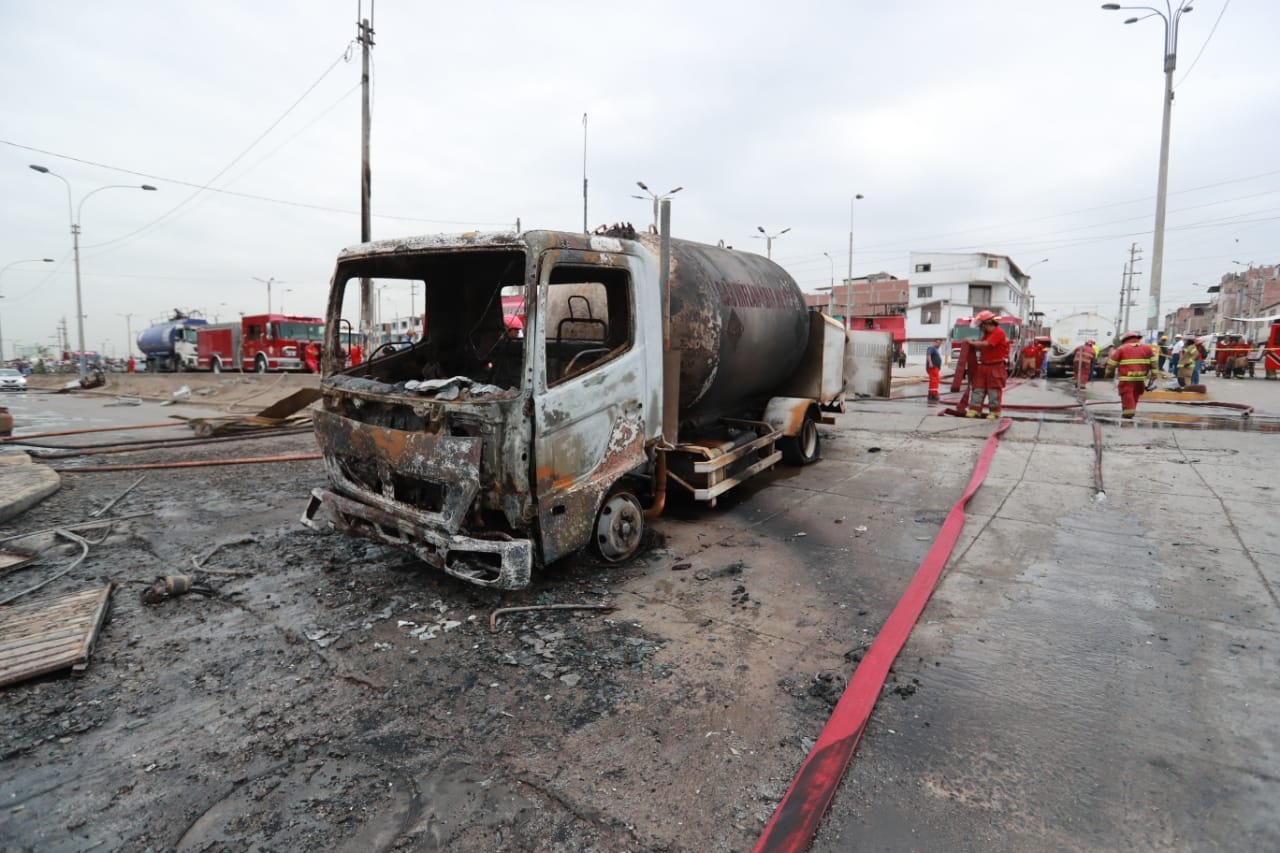 Un camión cisterna que transportaba gas licuado de petróleo (GLP) provocó el incendio ocurrido en el cruce de las avenidas Edilberto Ramos (Mariano Pastor Sevilla) y Villa del Mar, en el distrito de Villa El Salvador.
