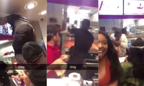 El video de YouTube muestra cómo uno de los revoltosos saltó el mostrador del KFC y empezó a llevarse el pollo frito. Otros cinco siguieron su mal ejemplo. Cinco minutos después llegó la Policía y puso orden, pero muchos de los responsables pudieron escapar sin ser identificados.