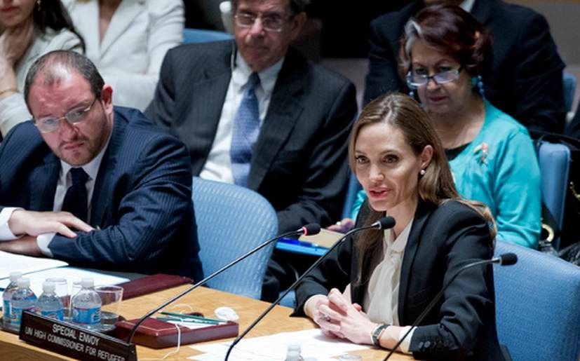 Angelina Jolie ha realizado más de 60 misiones oficiales con la ONU y la primera vez que se interesó en la pobreza mundial y la crisis humanitaria en el mundo fue durante el rodaje de la película Tom Raider. Tras eso, se unió a ACNUR y visitó diferentes campamentos de refugiados del mundo.