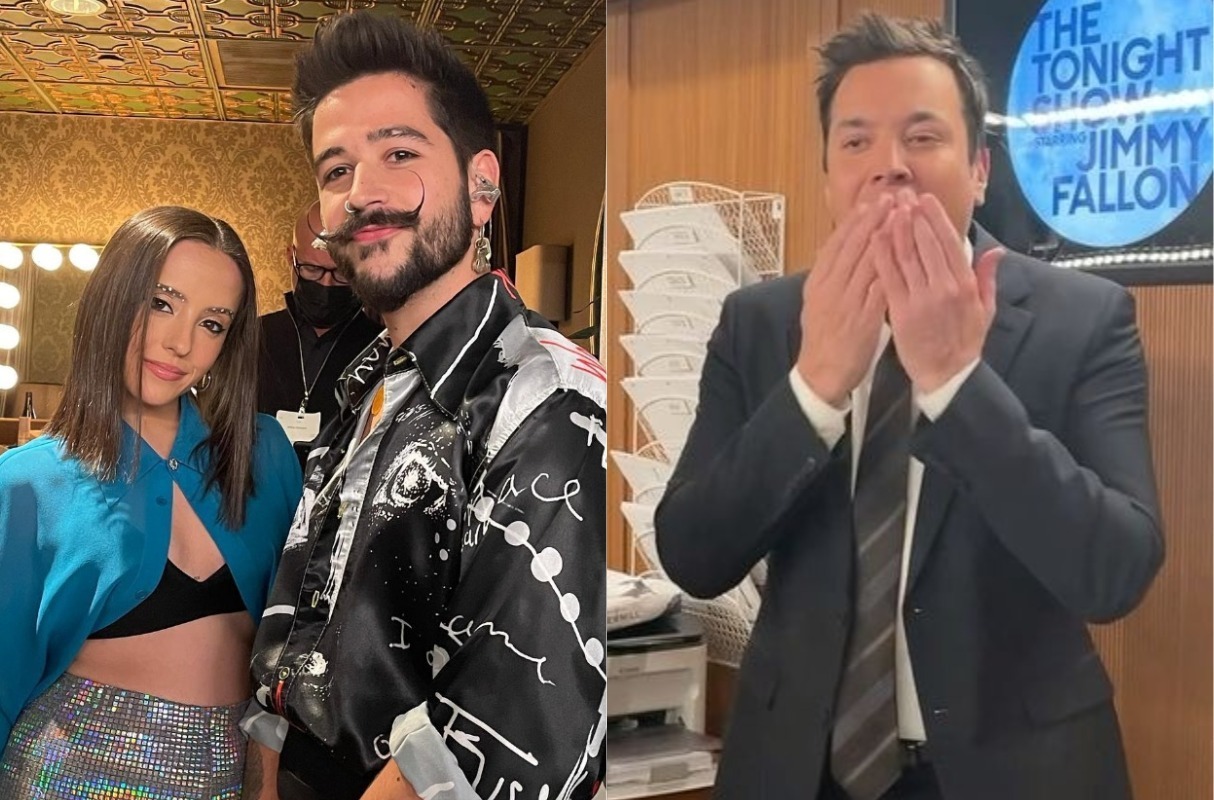 Poco antes de salir al escenario, Camilo y Evaluna tuvieron una conversación con Jimmy Fallon, quien les entregó una camiseta pequeña con el logo del show de la talla de su bebé, hecho que les dio una idea que compartieron con el presentador.