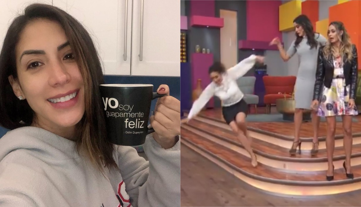 Un video viral muestra el momento exacto en que la presentadora mexicana Cynthia Urías sufre una aparatosa caída durante las transmisión del programa “Cuéntamelo Ya”, que se emite por el canal de Las Estrellas.