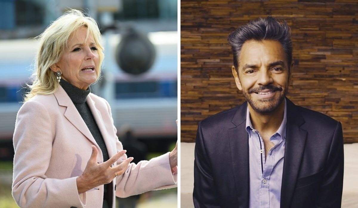 Fue la esposa de Derbez quien compartió la charla en sus redes sociales. “¡Hola equipo! Les quiero compartir una conversación que tuvimos Derbez y yo con Jill Biden sobre algunos puntos importantes para nuestra comunidad latina de cara a las próximas elecciones en USA”, se lee en la descripción.